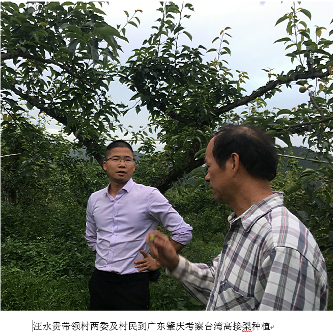 汪永贵到村后就开始密集的走访调研。走访中,村民提到最多的是蜜柚问题,“汪书记,我们村空气、水质都很好,就是种植的蜜柚收成不好,2015年的霜冻冻死了村里很多的蜜柚,我们村很多人都亏本。”村民所说的蜜柚,是平和县的支柱产业。但对于高海拔、低气温的山区,蜜柚并不适宜种植。汪永贵听在耳里,记在心里,通过气象数据收集和水质土壤检测,多方邀请专家和企业家到村里调研考察,并经常带领村“两委”和村民多方实地考察,不到半年,村里就建立了适宜的台湾高接梨和蜂蜜李新品种示范基地。针对村民思想意识保守的情况,汪永贵鼓励村民大胆尝试,先后引进来了组培金线莲、小米椒和水果牛奶玉米等新品种。很多人劝他不要做产业扶贫这块,原因是产业扶贫成功率太低,但是汪永贵相信科学,相信通过精准的检测,摸清市场需求,就一定能在一定层面上得到改善。他说“只要做足调研,觉得合适,那就要大胆尝试,做了不一定成功,但没做就一定不会成功。”